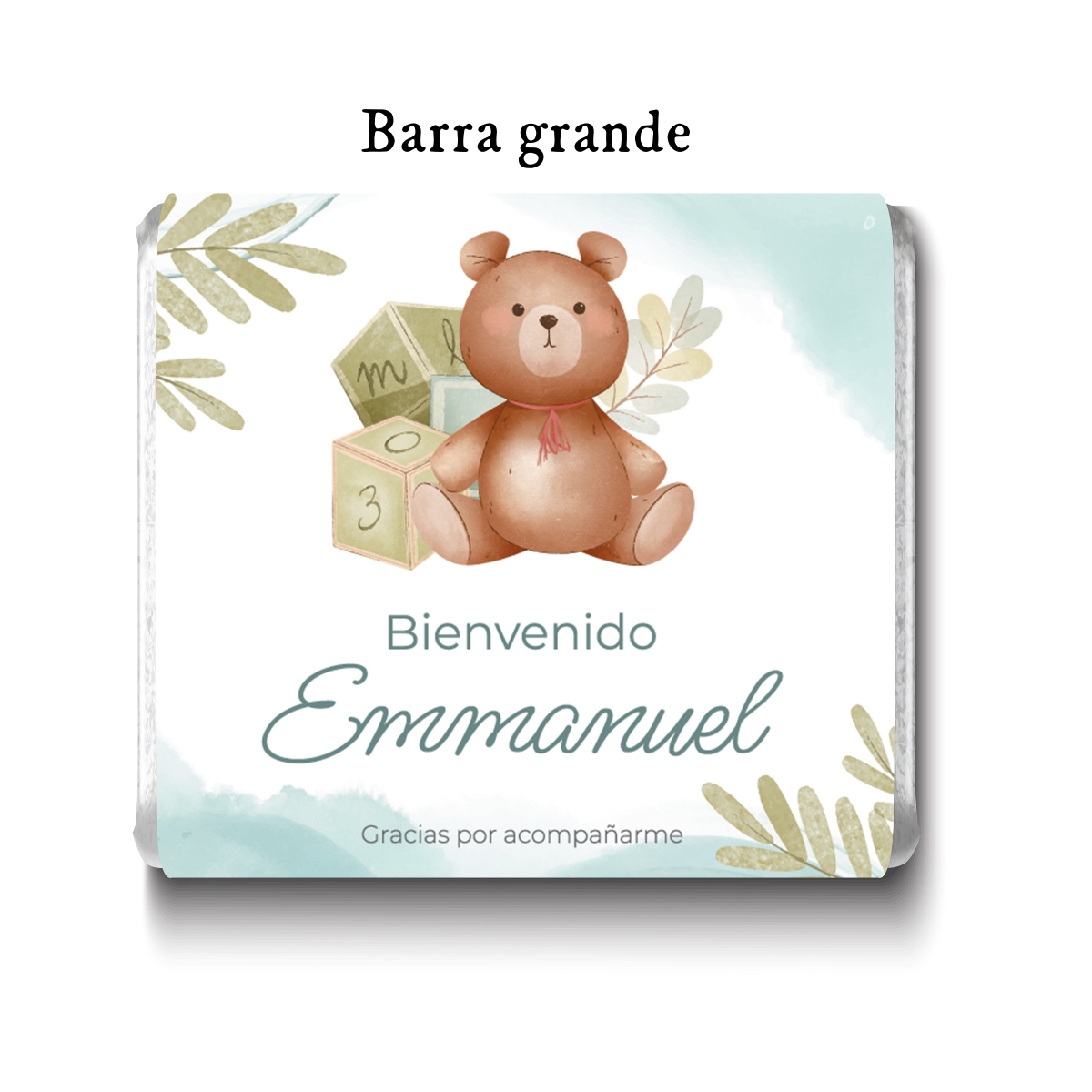Barra de chocolates diseño personalizado para nacimiento de bebé #NB004